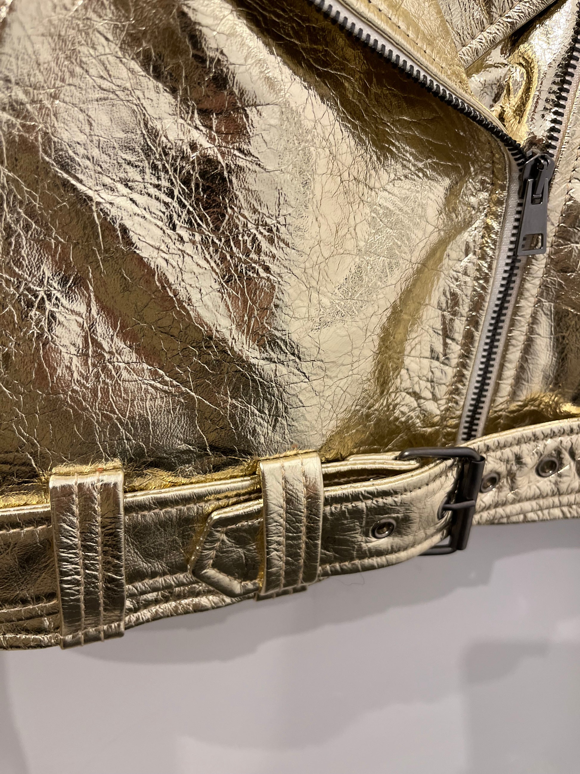 Alyson Eastman Gold Metallic Moto Jacket XS