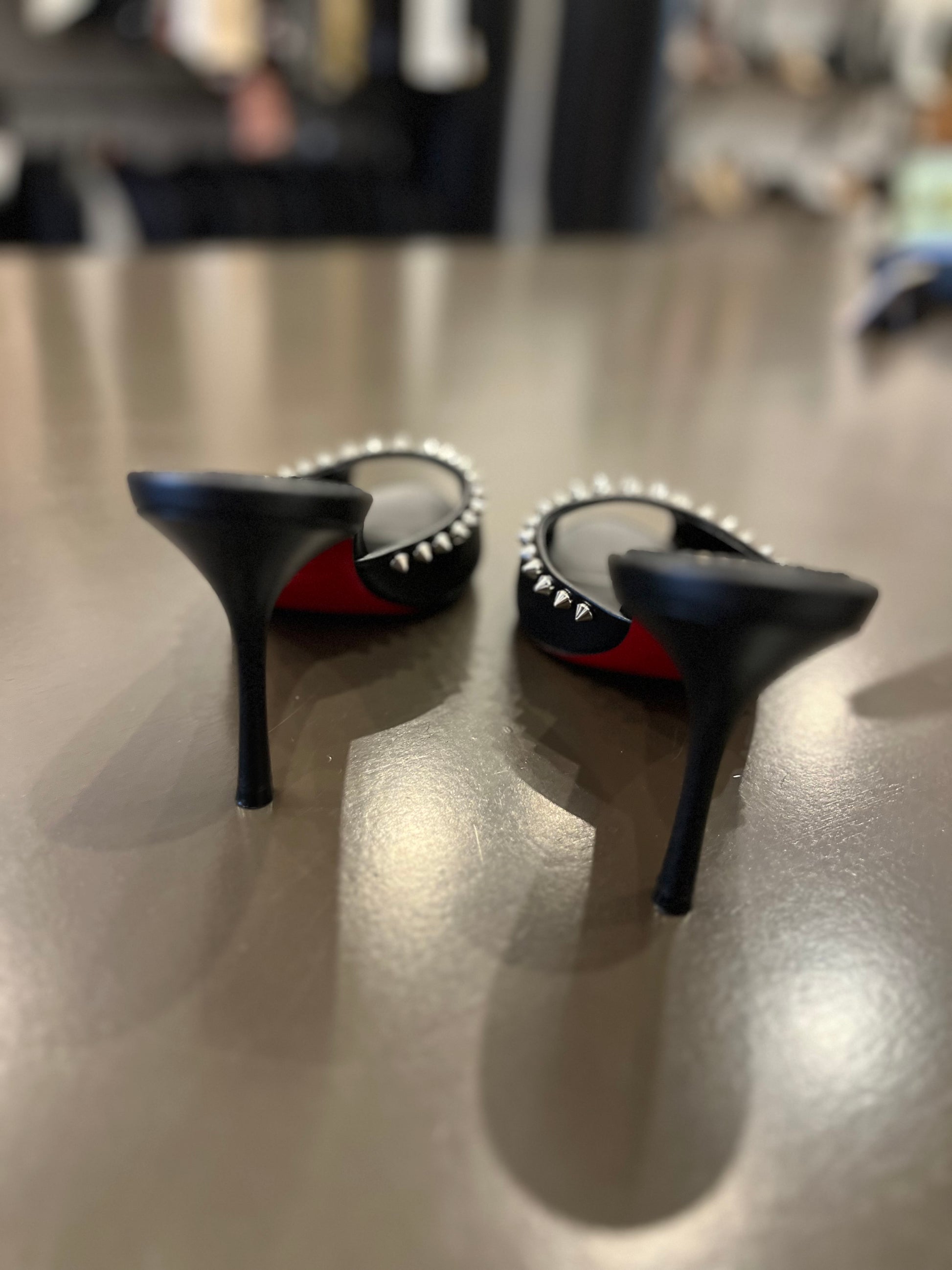 Christian Louboutin Studded Leather Mule Heels – Black 38