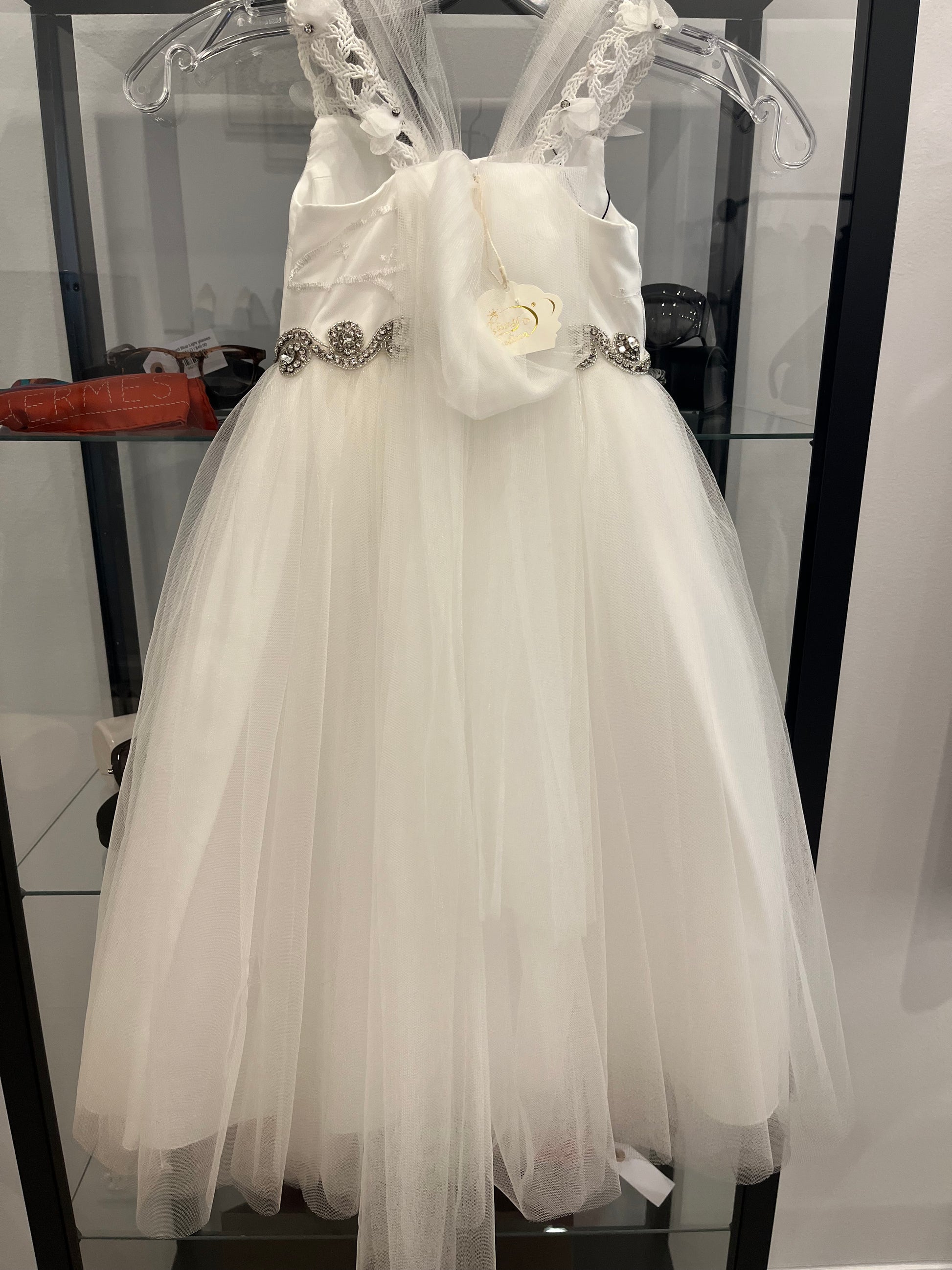 Princess Daliana Girls White 2T Dress with soft tulle flowers, pearls and rhinestones.
