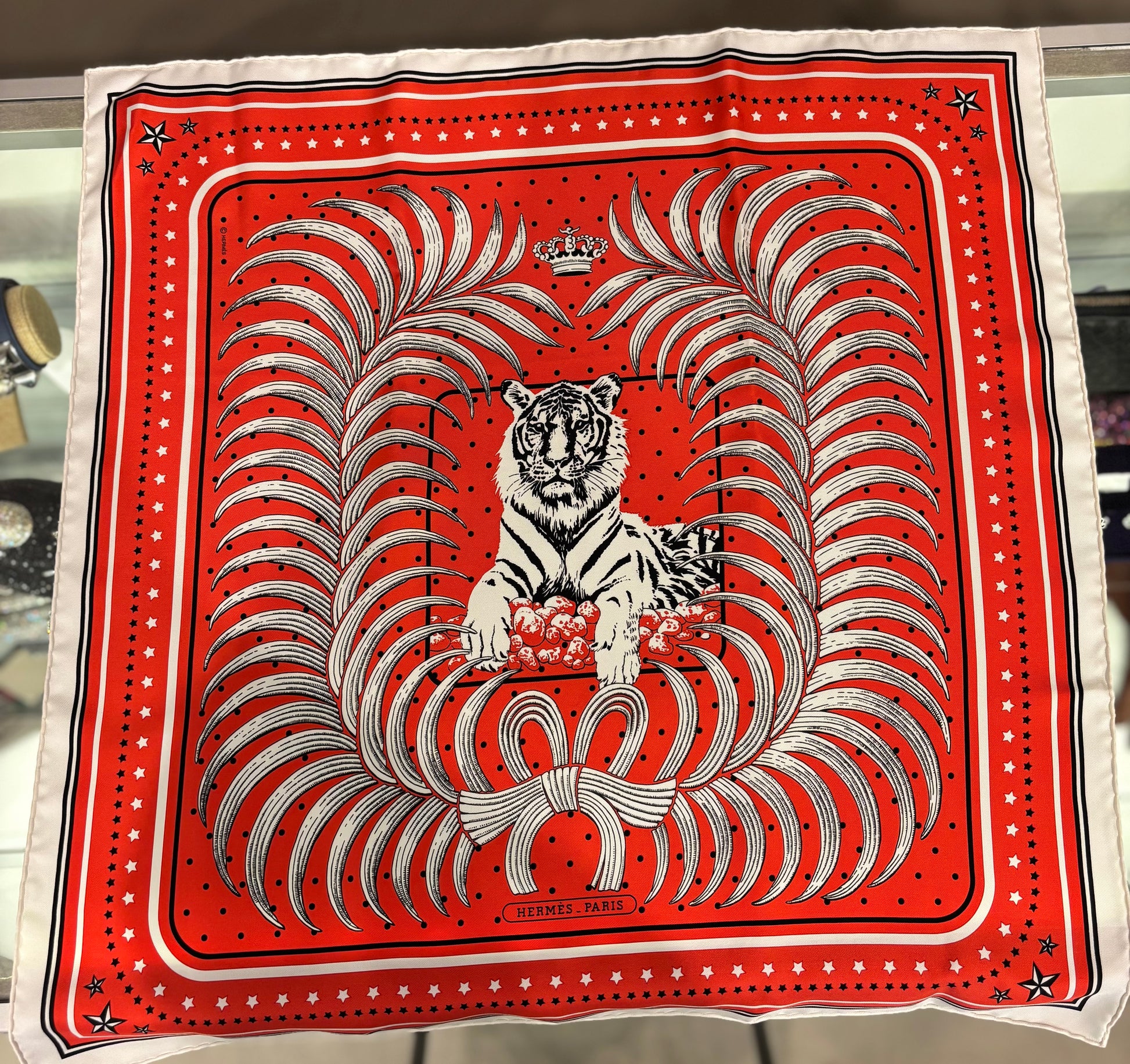 Hermès “Tigre Royal” Silk Scarf – Red/White – 90cm