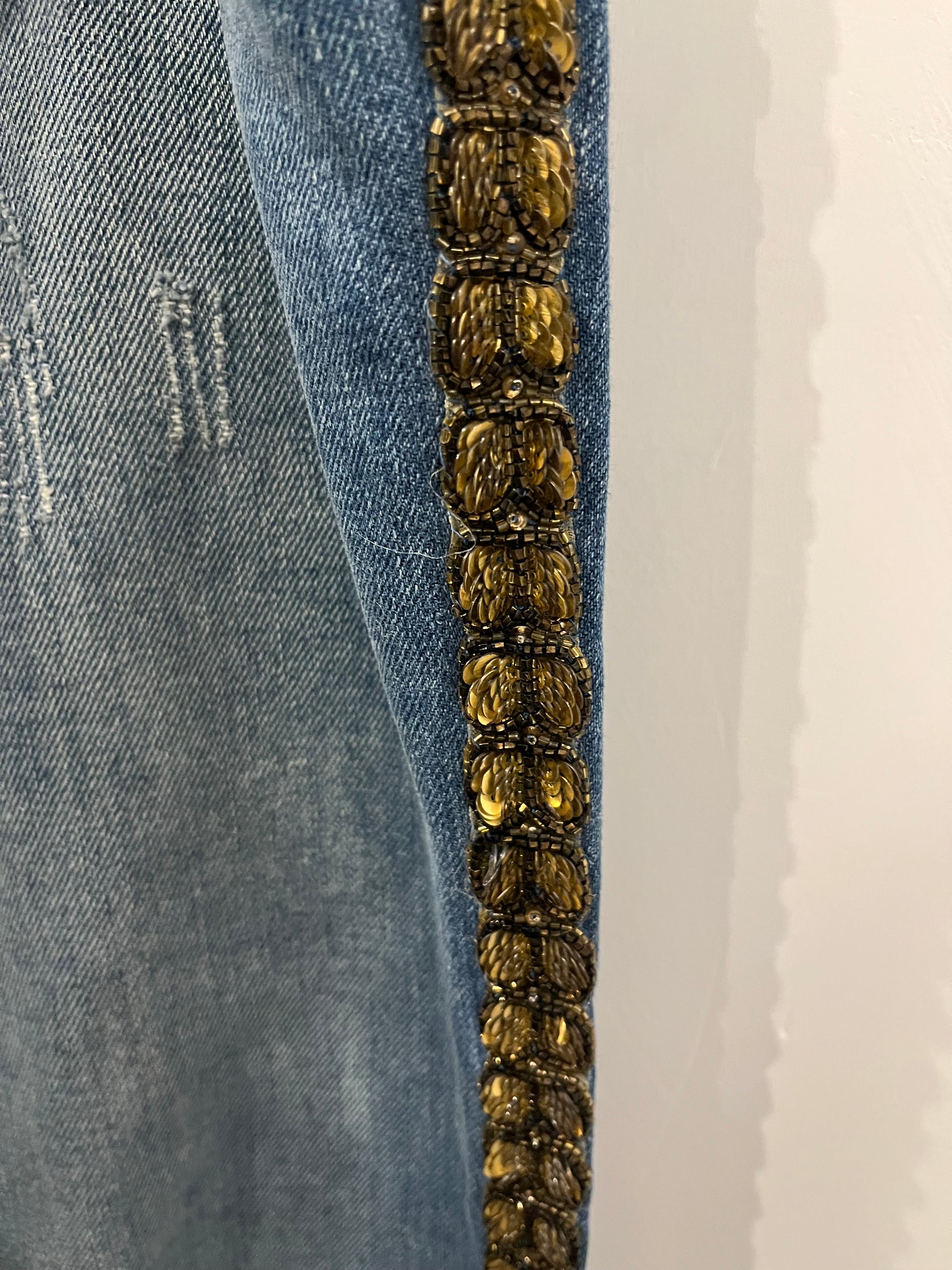 Roberto Cavalli Couture Gold Sequin embellishes jeans 48