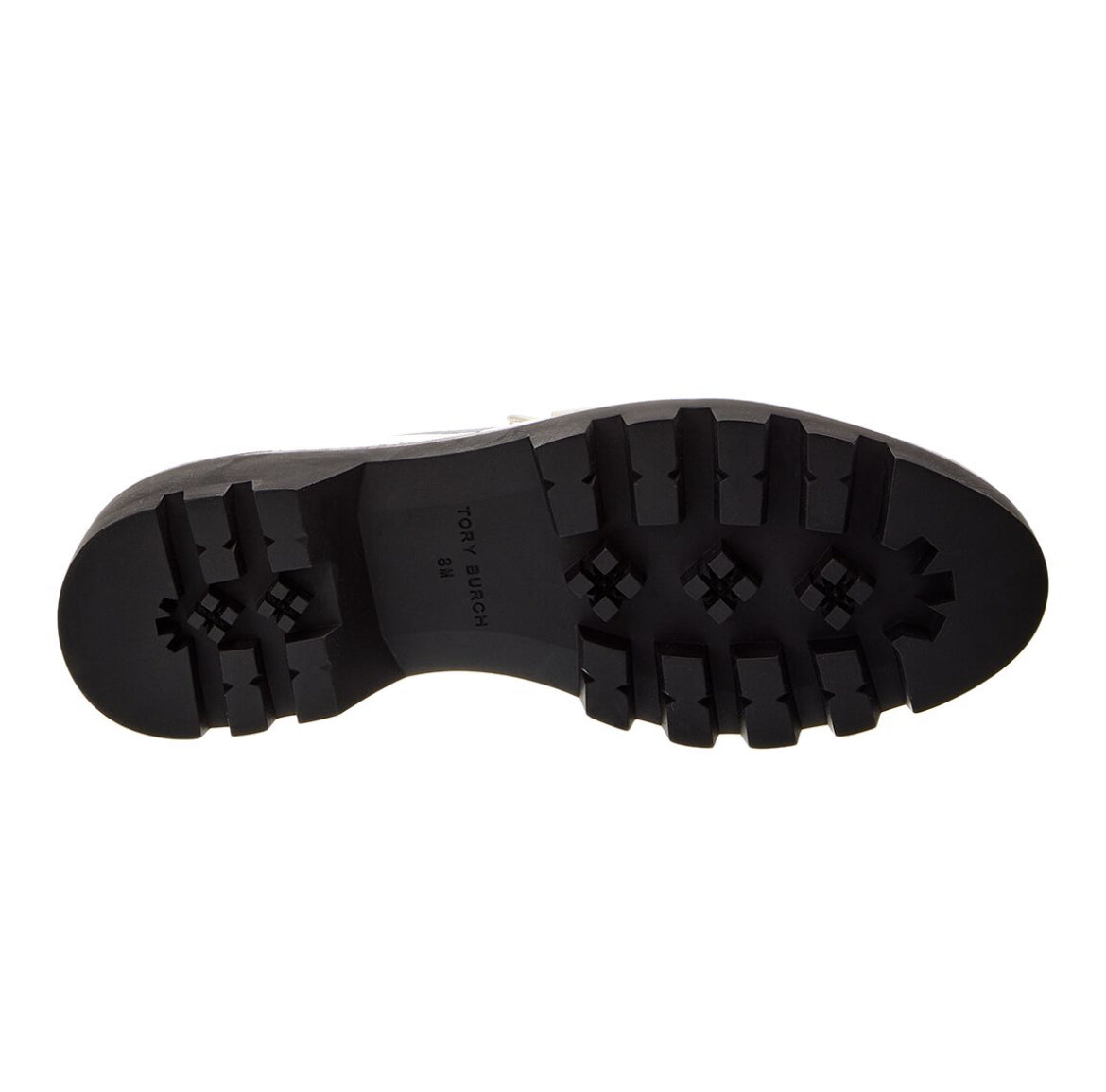 Tory Burch chunky leather loafer in new ivory leather and rolled brass hardware with logo accent. Size 8 Women's