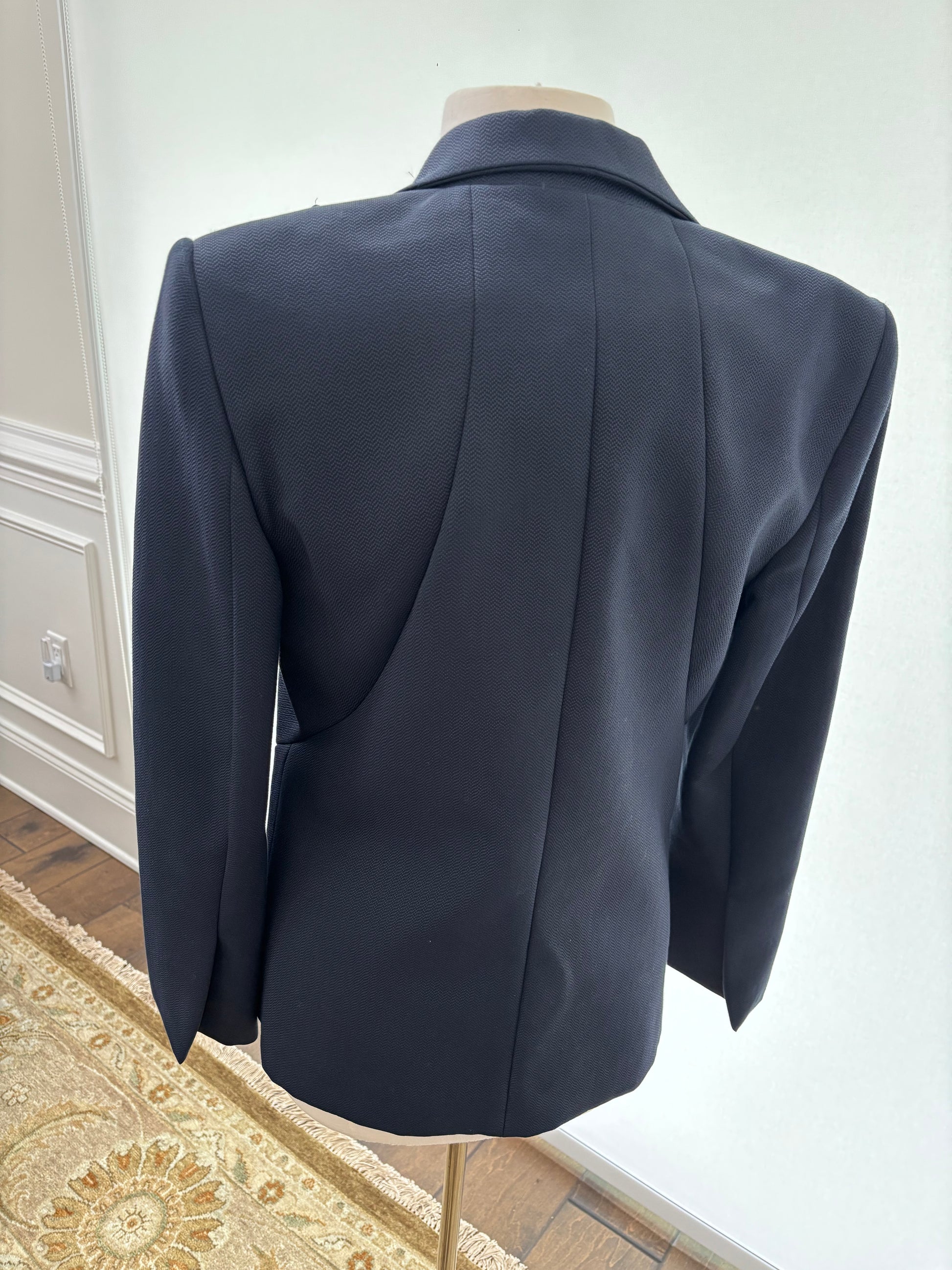 Wes Gordon Navy Black Herring Bone Blazer Size 12